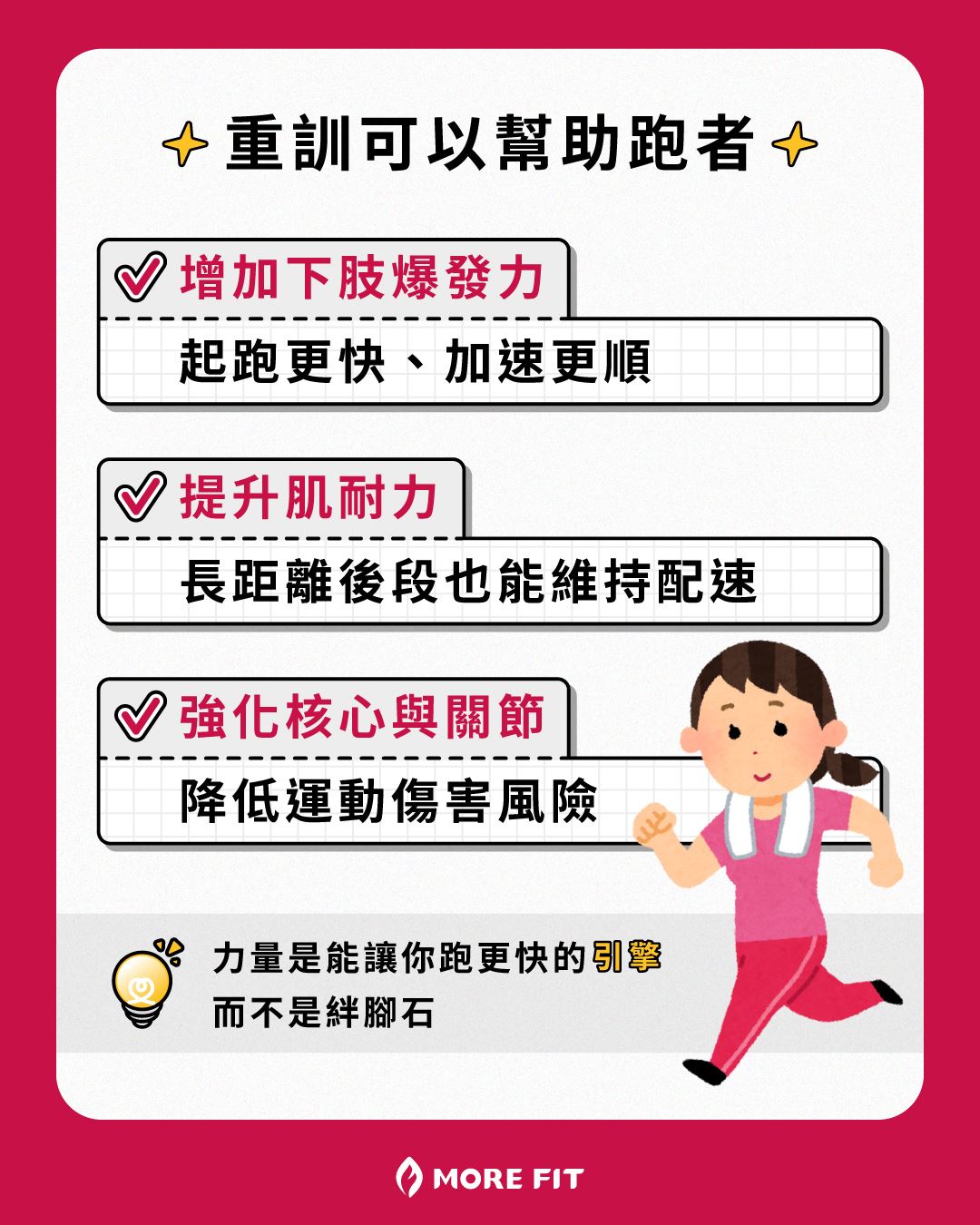 簡單來說~重訓是能讓你跑得更快、更久的唷💪💪