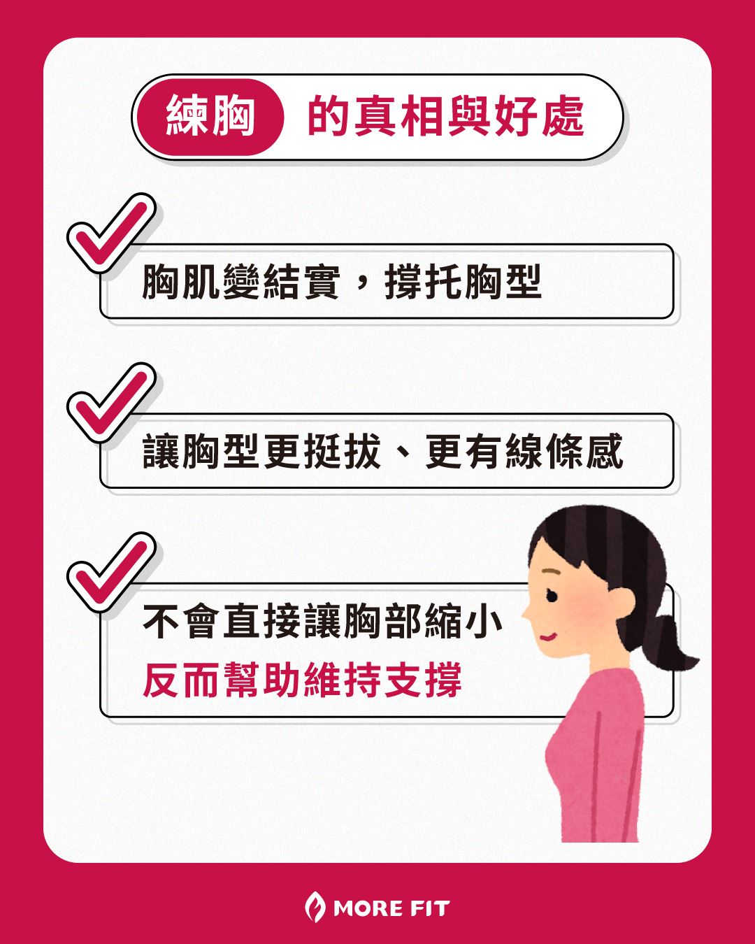 ✔ 練胸會讓 胸大肌更結實,撐托胸型