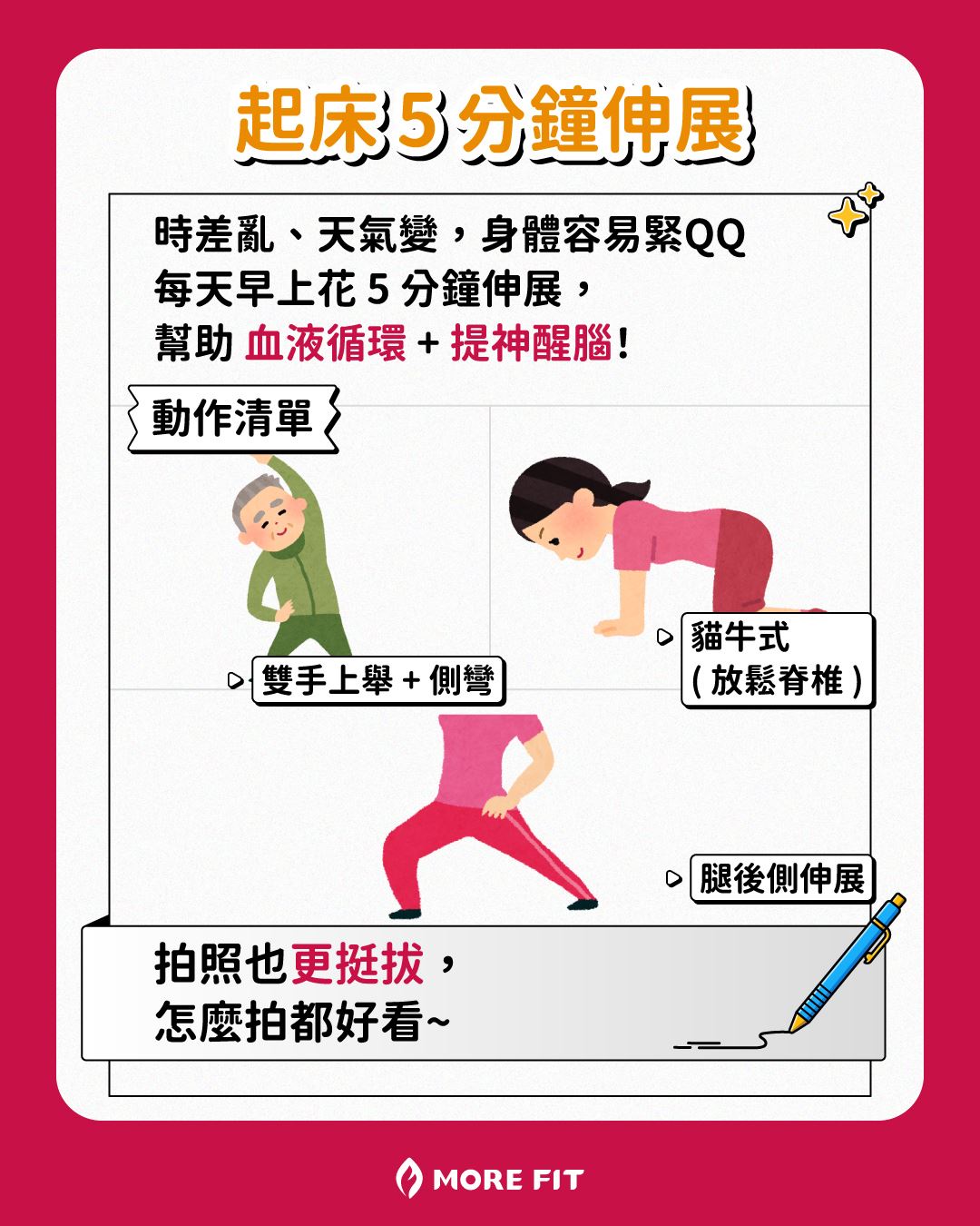 每天早上花 5 分鐘伸展,幫助血液循環、提神醒腦,