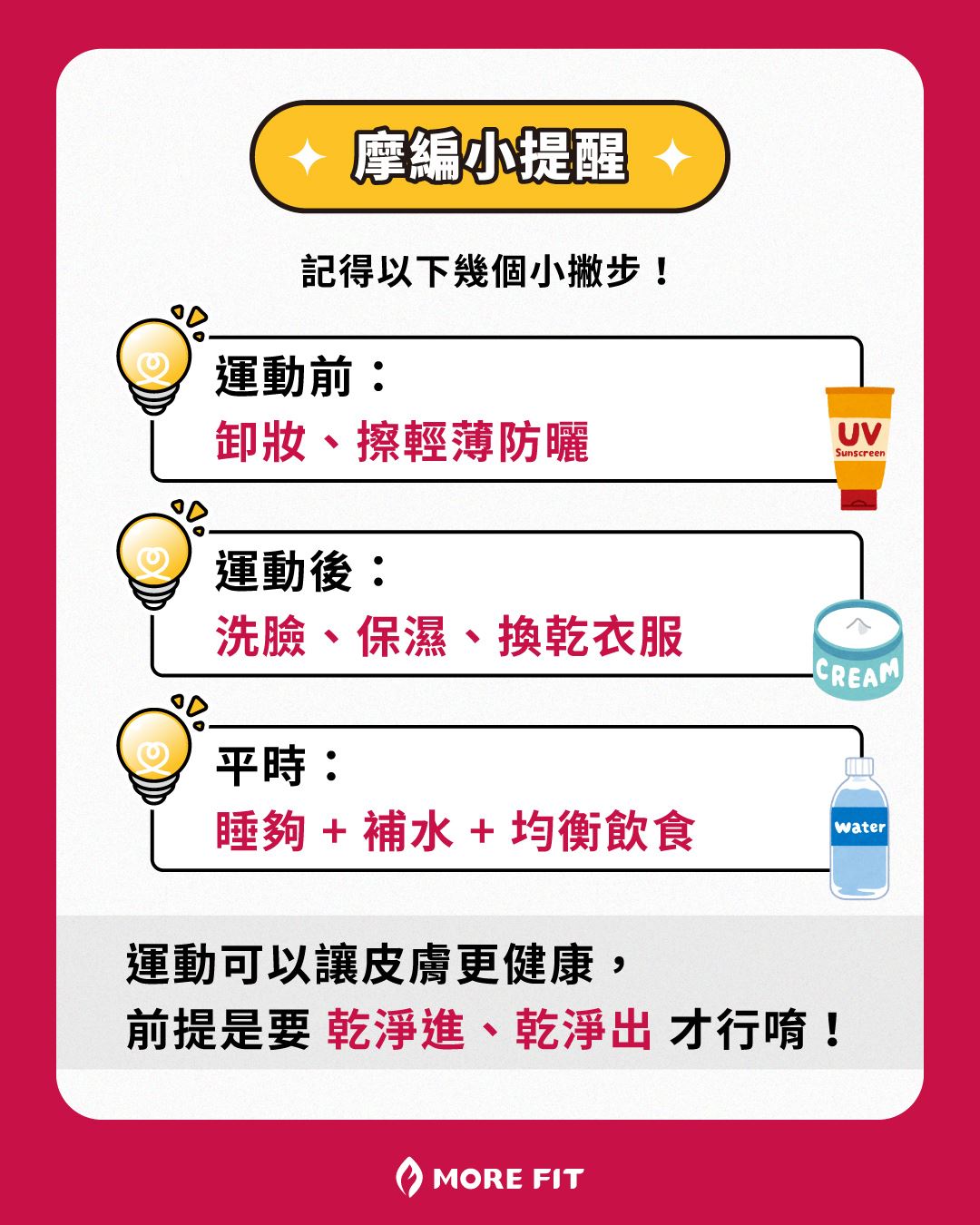 總而言之呢~規律運動 = 整體膚質穩定、氣色更好唷!