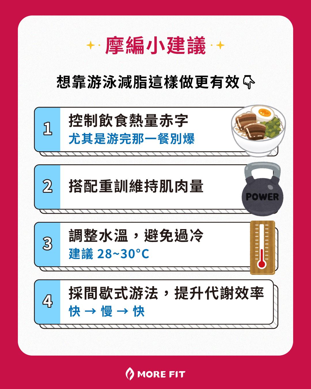💡 摩編給大家幾個小建議:想靠游泳減脂這樣做更有效👇