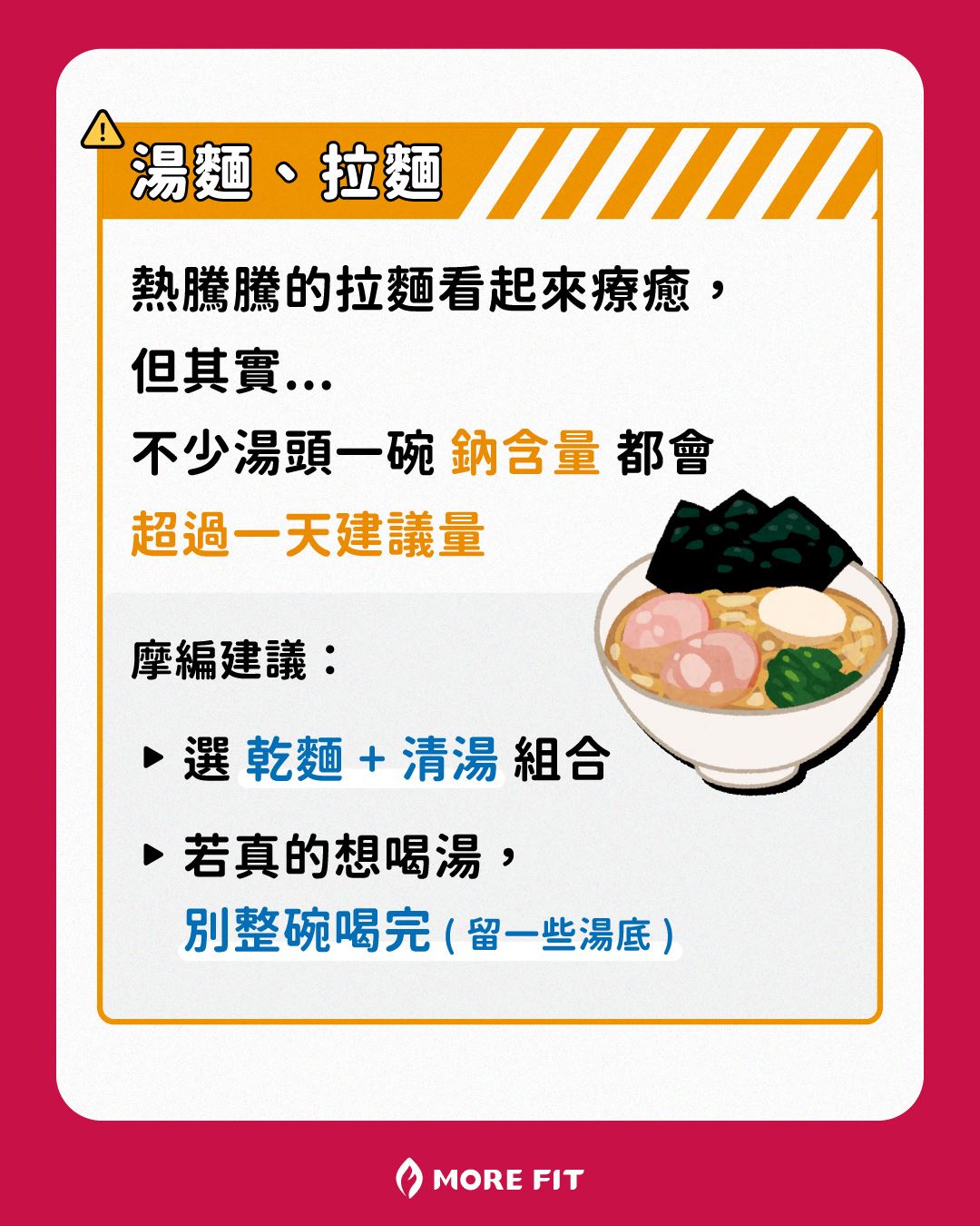 🍜 ❸ 「湯麵、拉麵」=鈉爆+油爆