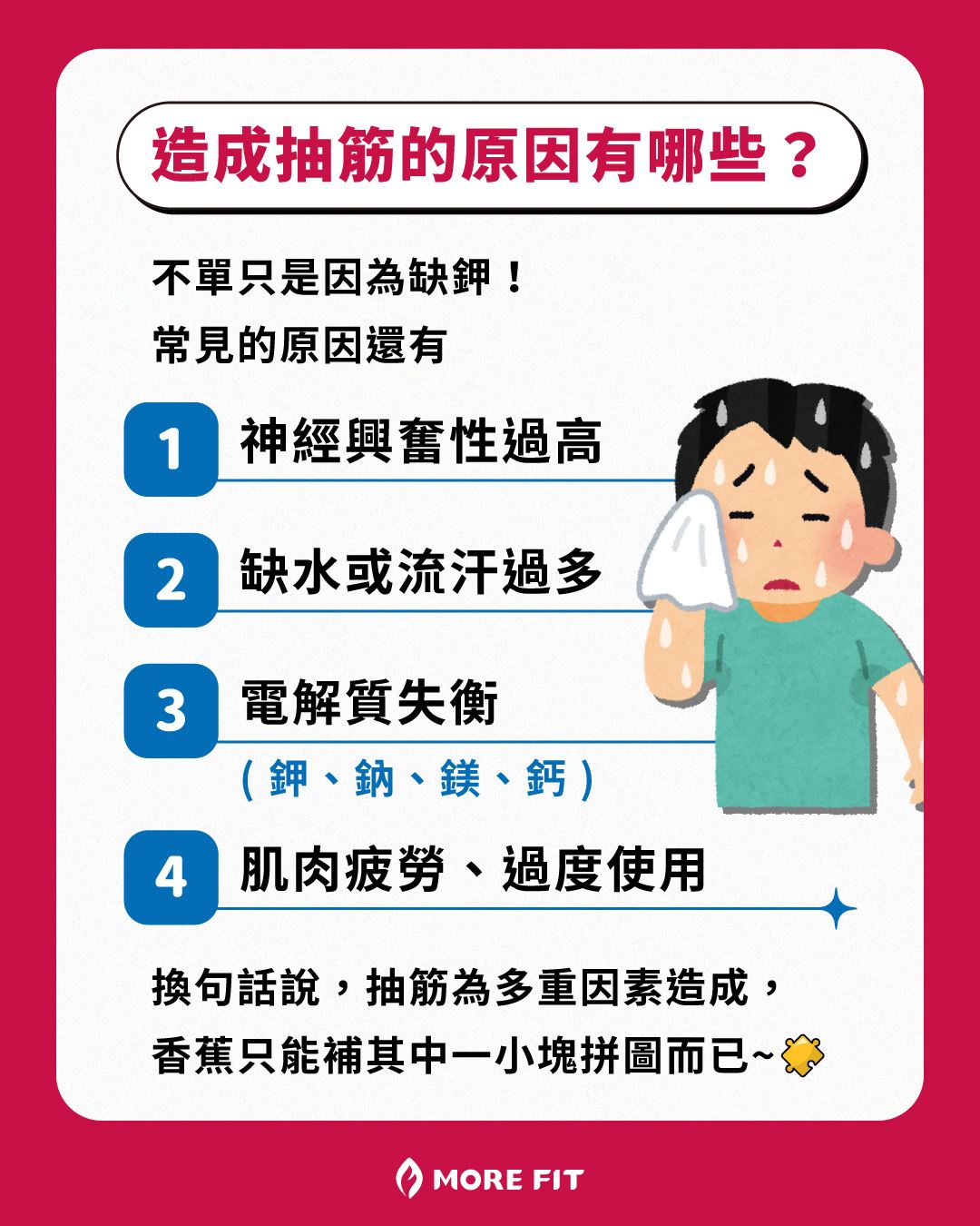換句話說,抽筋是多重因素造成的,香蕉只能補其中一小塊拼圖而已 🧩