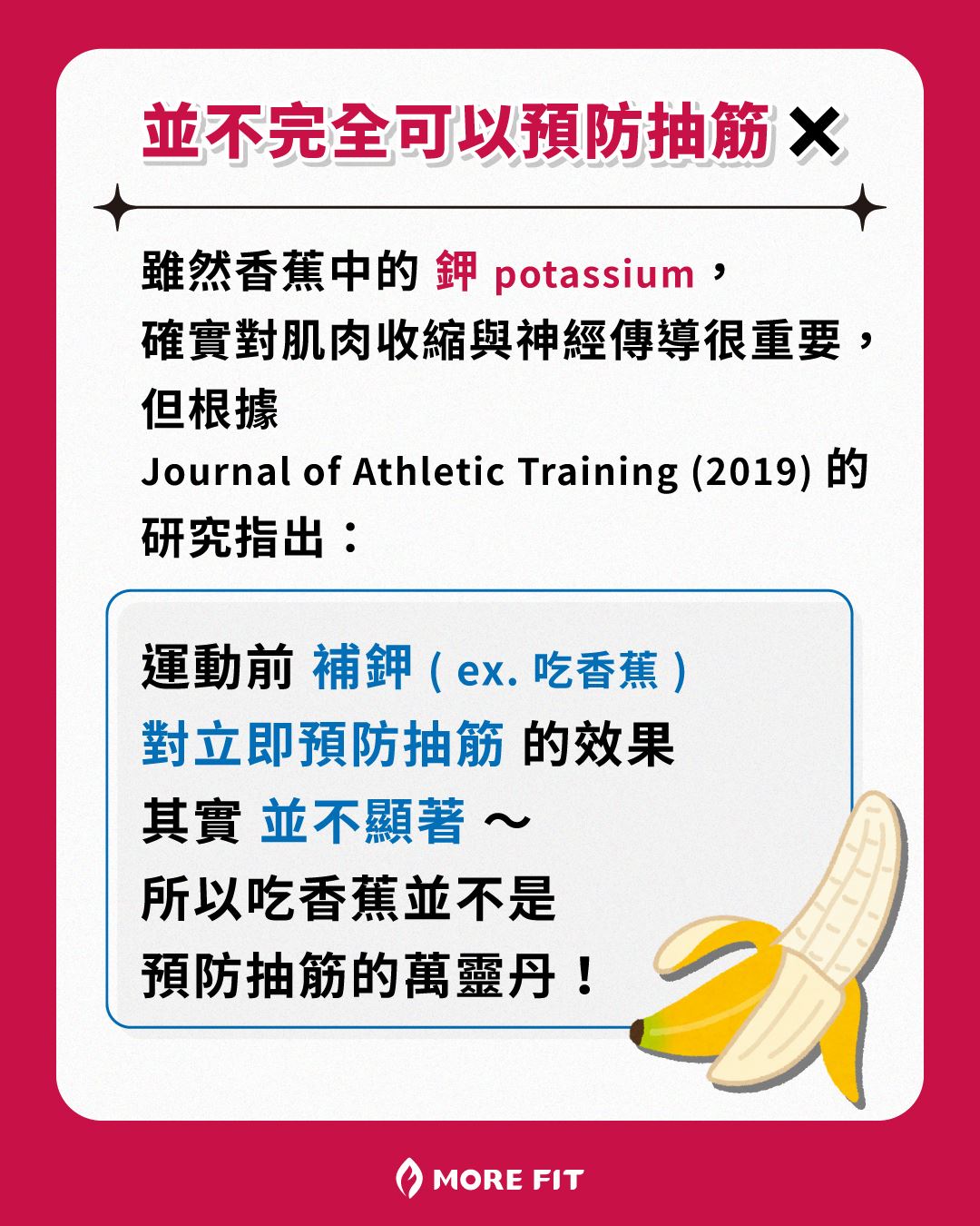 運動前補鉀(例如吃香蕉)對立即預防抽筋的效果其實並不顯著~