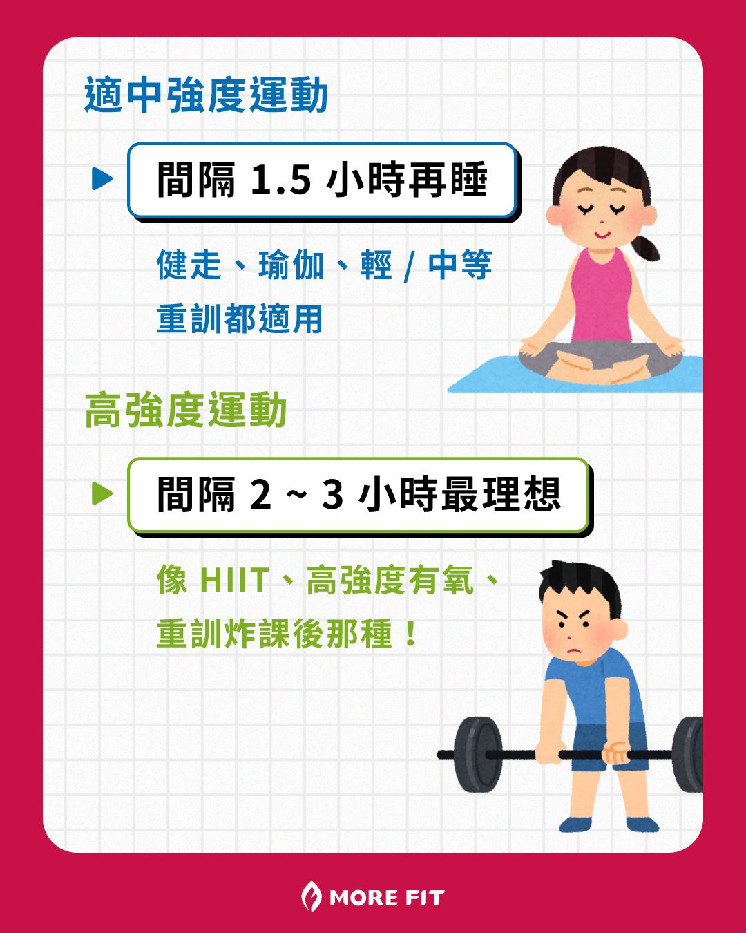 ⭐️ 適中強度運動 → 間隔 1.5 小時再睡
