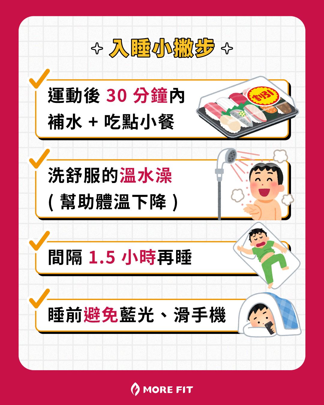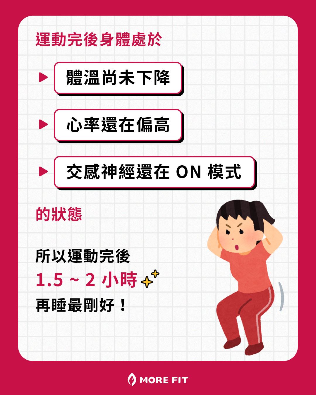 這也是為什麼研究指出,運動後身體需要時間冷靜下來才更容易入睡💤