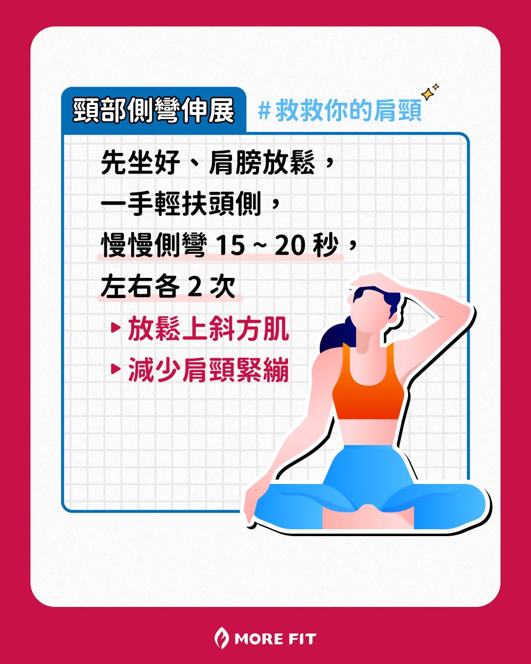 1️⃣ 頸部側彎伸展(救救你的肩頸)