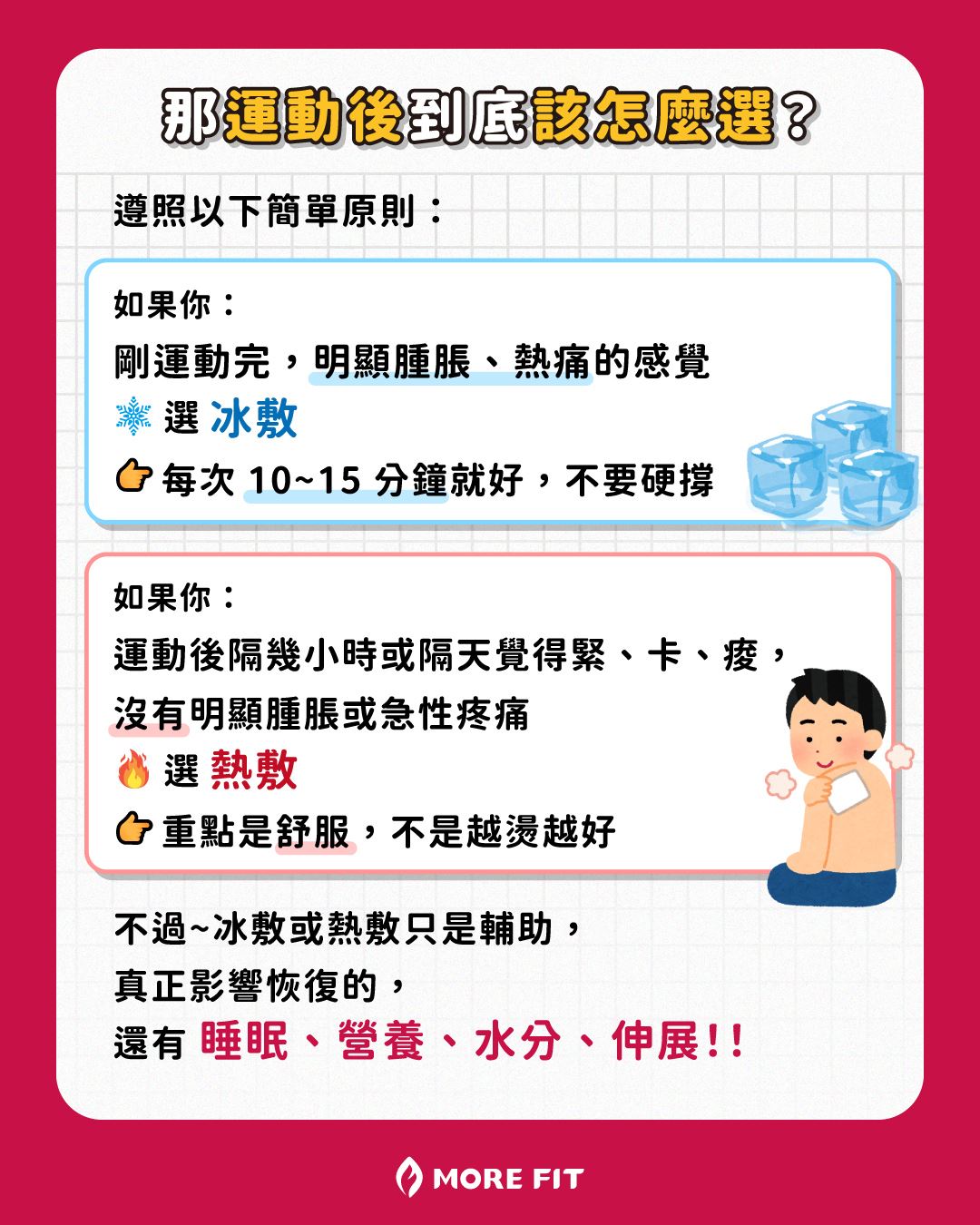 當然啦~冰敷或熱敷只是輔助,真正影響恢復的,還有睡眠、營養、水分、伸展️‼️