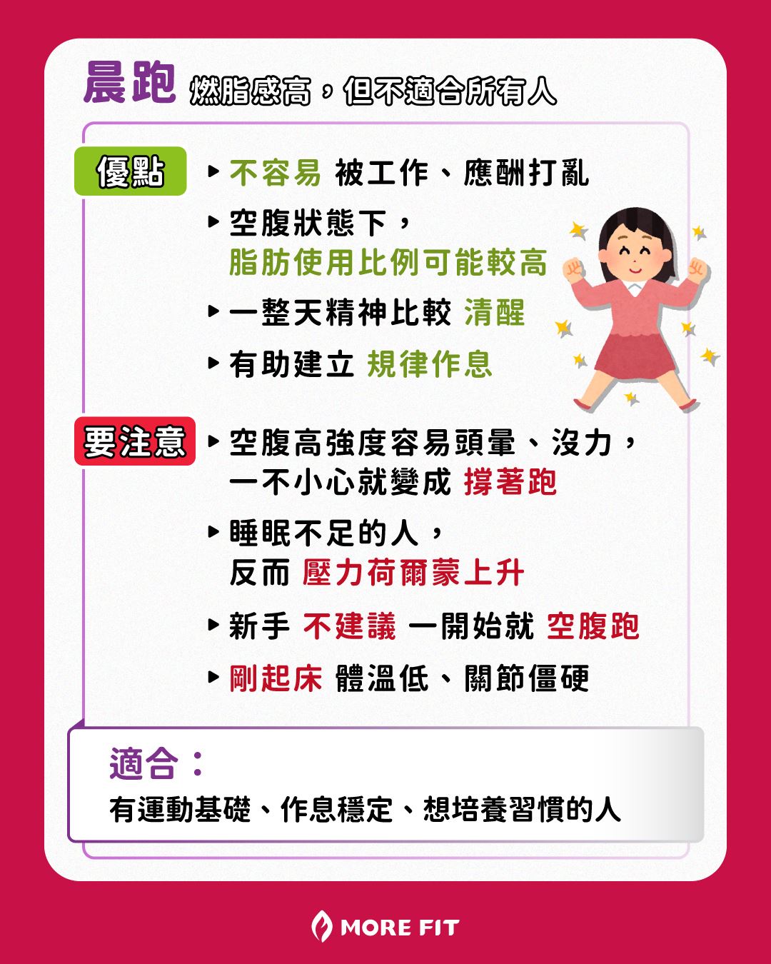 「是不是早上空腹跑最瘦?」、「晚上跑會不會越跑越胖?」