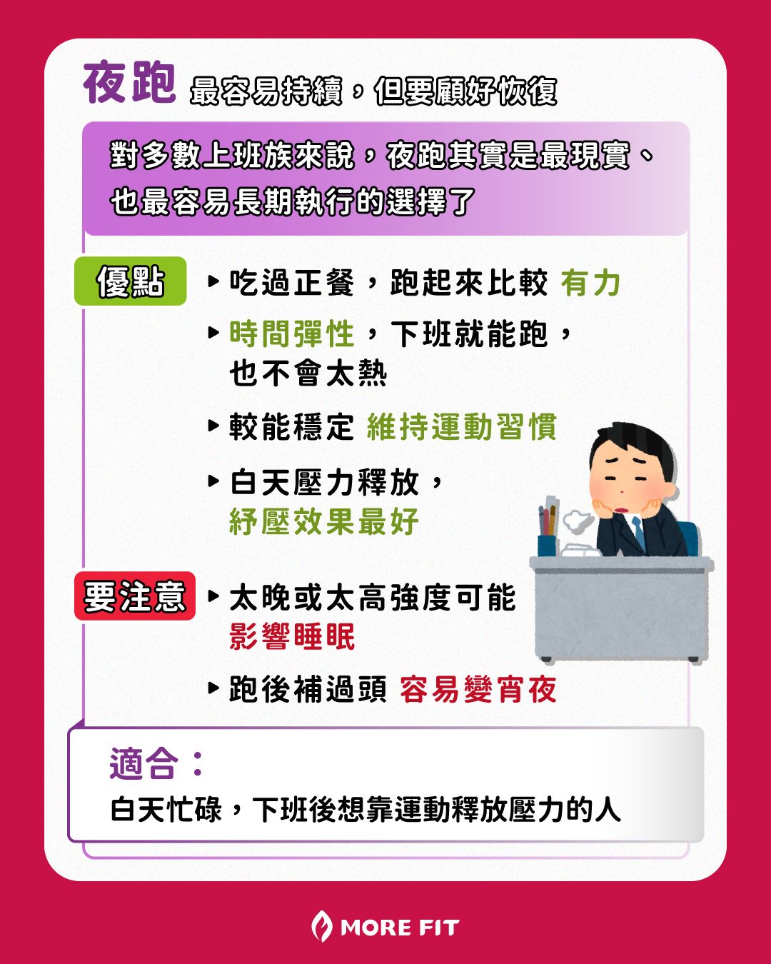 對多數上班族來說,夜跑其實是最現實、也最容易長期執行的選擇了